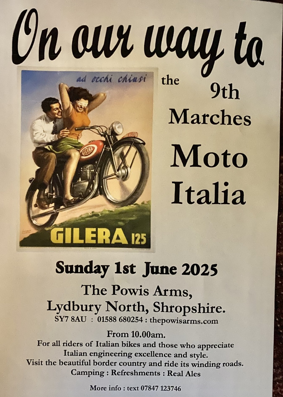 Great day. See Classic Bike July 2024 for report on last years event. I know some of you regularly attend. Be good to see a good turnout this year as it is the clubs 50th Anniversary. Perhaps a club ride out. I shall be there as usual with my 500 Sport and Laverda 1000 Jarama. I am an organiser and live nearby.