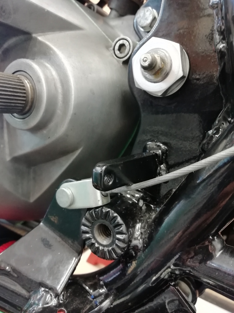 Can anyone tell me what this bracket is for on my 1979 350 Sport? It has an M5 thread tapped in it. The rear brake cable rubs on it whether it runs over or under it.